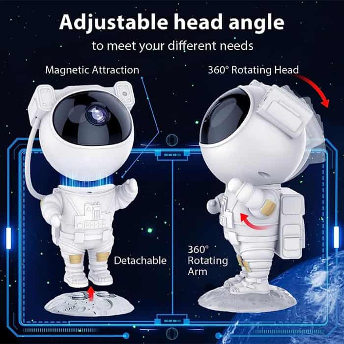 Проекторът AstronautLamp превръща стаята ви в космическо небе с реалистичен галактически ефект. Благодарение на широкия ъгъл на осветяване от 230° ще се потопите в спокойна и мечтателна обстановка – идеална за релакс, медитация или приспиване на децата.